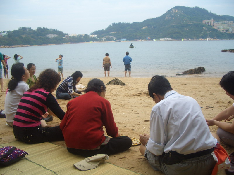 趁頂輪紀念日正好在週末,加上國內五一黃金周長假期,香港的霎哈嘉瑜伽群體迎接了一些廣東來賓。5月5日下午十位來自深圳、廣州、和順德的霎哈嘉士與我們一起在香港島南端的赤柱一個小沙灘上作戶外練習。晚飯前還有一個驚喜。我們四十人在赤柱廣場閑情坊的大帳篷下唱拜讚歌娛人娛已。有些路過的人很感興趣,跟我們一同起舞。有些更幸運的被緣份接引而獲得自覺。能夠在頂輪日為其他人的頂輪做點功德,是母親安排給我們最好的慶祝活動。