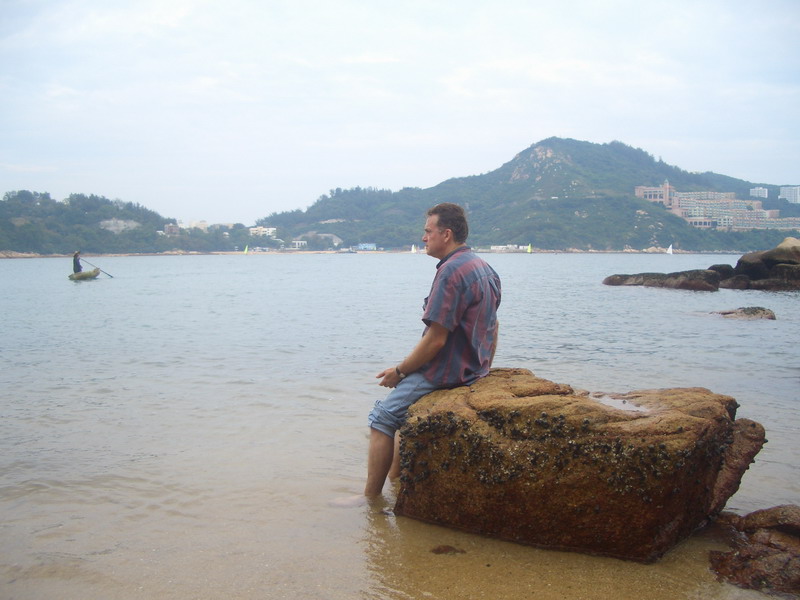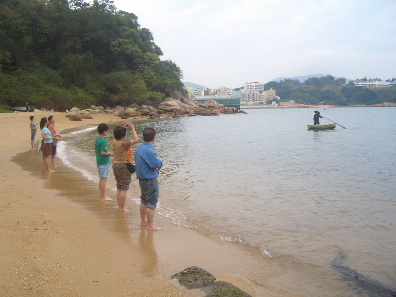 从山腰绕道来到沙滩,这里汇合了常来广州集体的顺德一家和其他香港家人,大家更开心了。周围有几个小海岛,西部(左边)海面上约