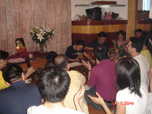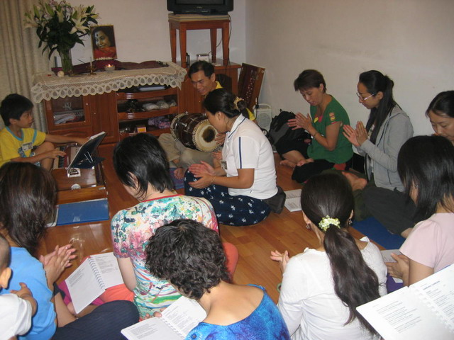 meditation, Mother's tape, learn the AUM sound, some mantras, and sing