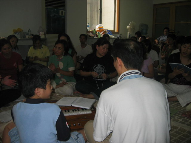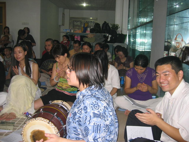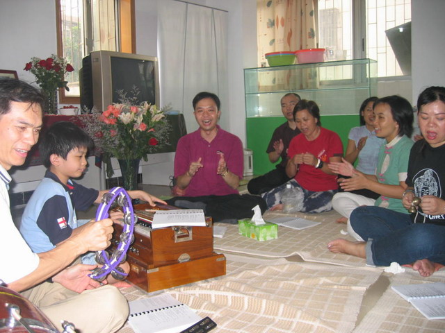 To make good use of the special holiday for National Day, a special programme was arranged for the Shengzhen collective, just across the border North of HK. It was originally planned to cater for stable ones as they so much eager to learn something more in-depth on top of just cleansing with water and candle, so we prepared material for head-rub, bhajans, indoor havan, and a subtitled VCD of Shri Mataji at the Royal Albert Hall 1994. When we arrived we were told there were 6 new comers so we started with a short introduction of Sahaj culture and Q& A, and then exchange vibration.