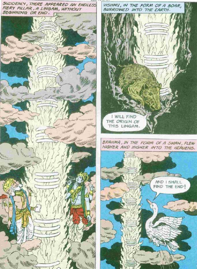 以上圖像,引自印度著名神話兒童連環圖系列 Amar Chitra Katha Series (p.15, Vol. 519 - Elephanta) ( Ed. Anant Pai ; India Book House Ltd, 1977)
