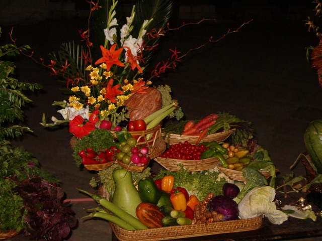 Around  9.00 PM   we  were  called  inside.  We  were  taking  all  the  things  inside..  we  meditated  sitting  outside, in  a  hall  and  the  trusties  and  the  cameramen  went  inside  for  the  Puja.  They  offered  everything  to  Shri  Mataji  and  She  was  very  happy  to  see  all  People  around and said  that  She  was  very  happy  in  this  manner  after  so  many  days.  When  the  cameramen  were  taking   the  pictures,  Shri  Mataji  told  them  to  take  pictures  of  the  nice  decoration  of  the  Fruits  and  vegetables.