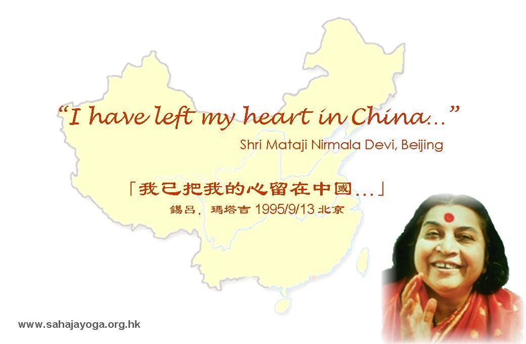 Remember Shri Mataji once said, “ I have left my heart in China (Beijing, 1995) see: http://www.angelfire.com/retro/hksahajayogi/Mataji_china_pic.htm